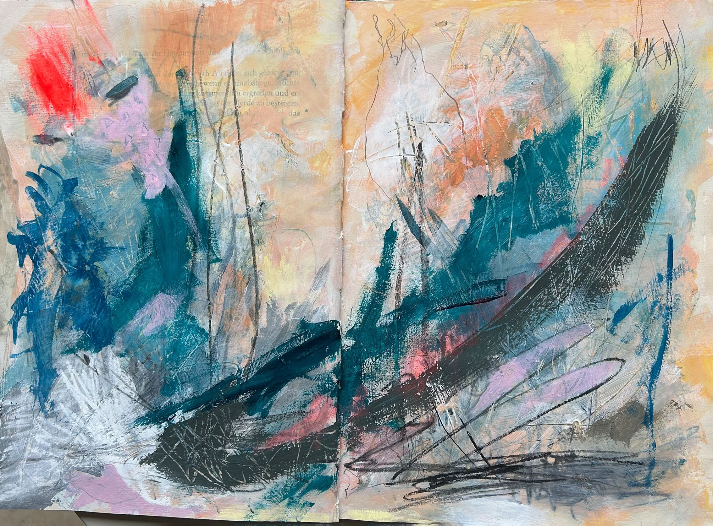 Meine Bilder reproduzieren nicht, was du in deiner Umgebung siehst. Sie transformieren Bewegung, spontane Impulse, rohe Gefühle — Liebe, Wut, Trauer, Hass, Freude — direkt in Farbe und Form. Ausbrechen. Überlaufen. Drängen. Stürzen. Wucht.